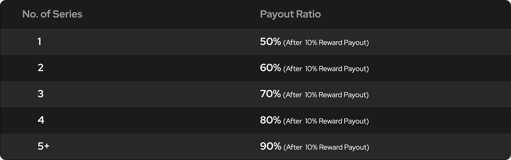3つ目のアカウントのペイアウト率は60%にアップグレードされ、累積利益は0ドルにリセットされます。このシリーズの累積利益は$2,100 (21%)ではなく、$900 (9%)となります。これは、アカウントがアップグレードされ、以前のシリーズからの余剰利益がさらなるアップグレードの基準にカウントされないためです。